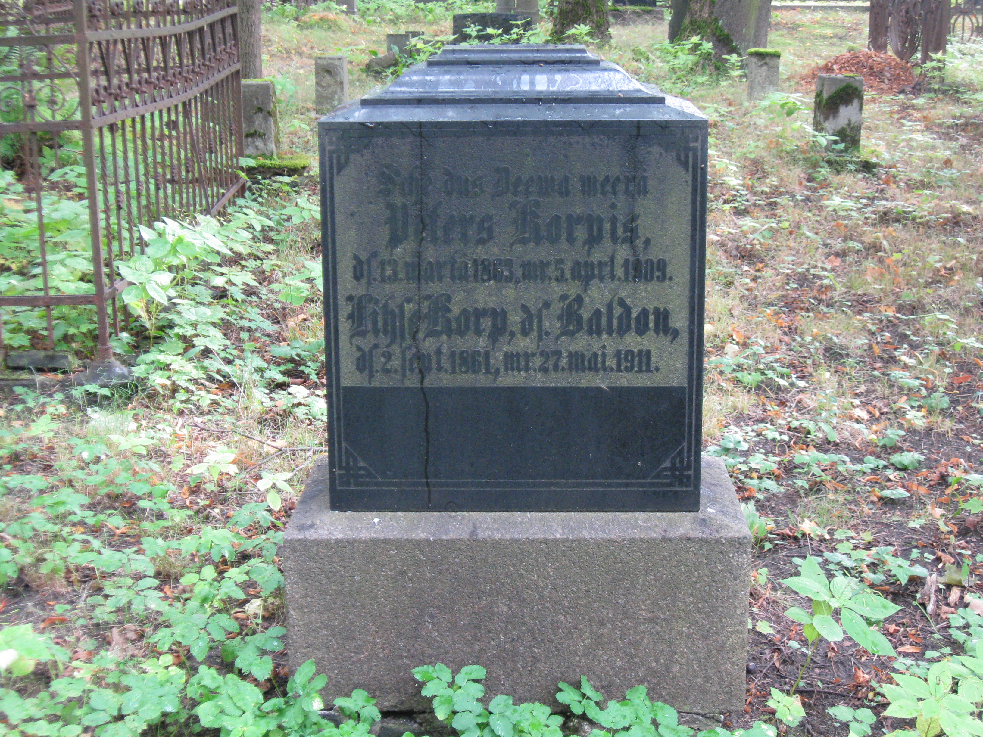 Pēteris Korpis, born March 13, 1863, died April 5, 1909; Līze Korpe, maiden name Baldone, born September 2, 1861, died May 27, 1911.